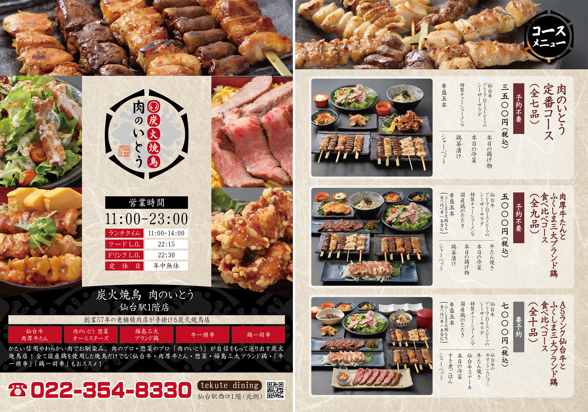 創業57年の精肉店である【肉のいとう】が手掛ける炭火焼鳥店が仙台駅1階tekute dining内にオープン!